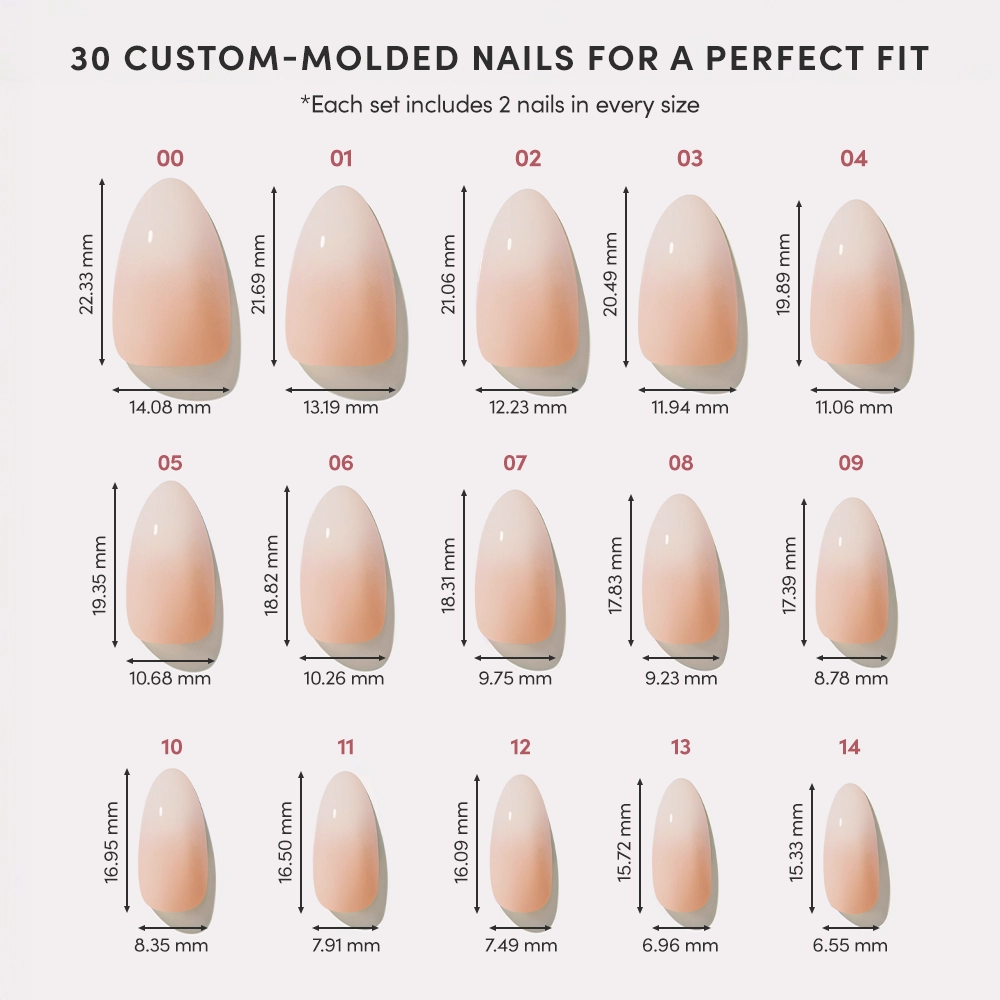 Celebrate your engagement with the Fiancéd Nail Set. Reimagining classic French tips with a modern nude-to-white ombré, these nails feature a glossy glazed finish that’s sleek and effortlessly cool. Easily apply in 5 minutes so you can skip the salon and spend more time commemorating your love.