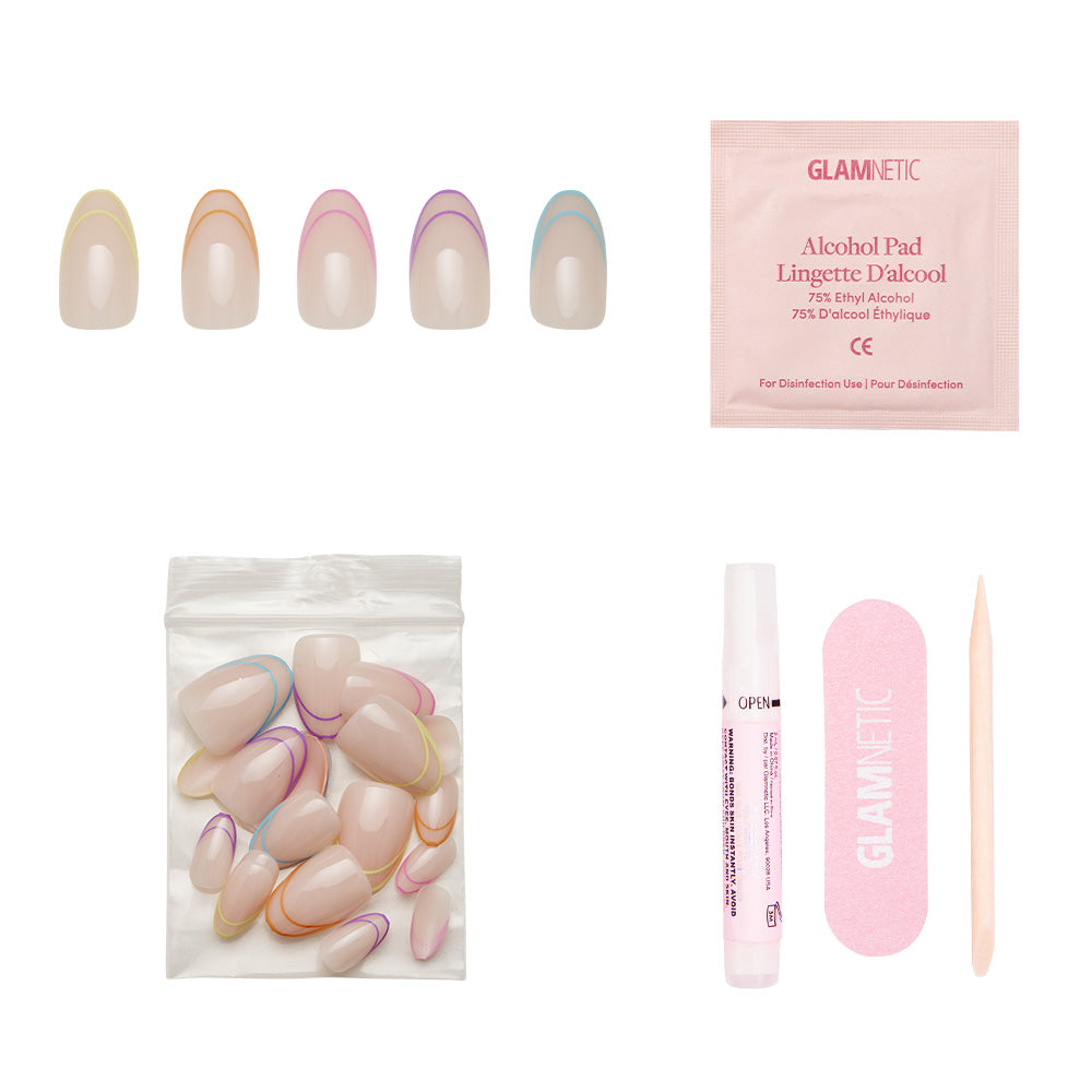 We’re blinded by the Neon Lights Nail Set! This trendy style features a semi-transparent base with multicolor neon french tips you’ll love. With the addition of our brand new short, oval shape, you’ll love this elevated take on an everyday mani.