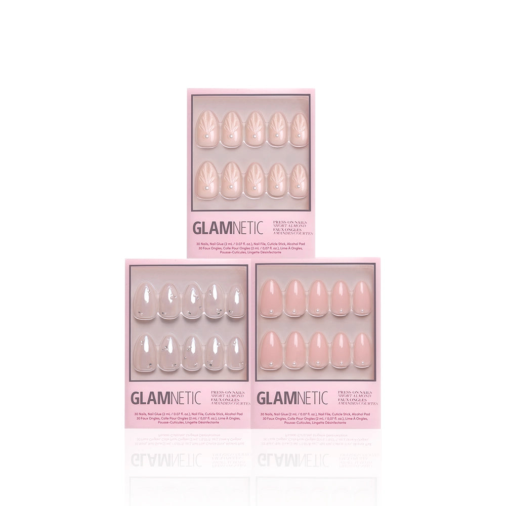 Take your bridal bling to the next level with the Put A Pearl On It bundle. This trio of short almond press-ons features chic 3D pearl accents and luxe glossy finishes — perfect for every bridal moment. Easy to apply in just 5 minutes, these something news keep your nails effortlessly flawless, so you can skip the salon and focus on saying