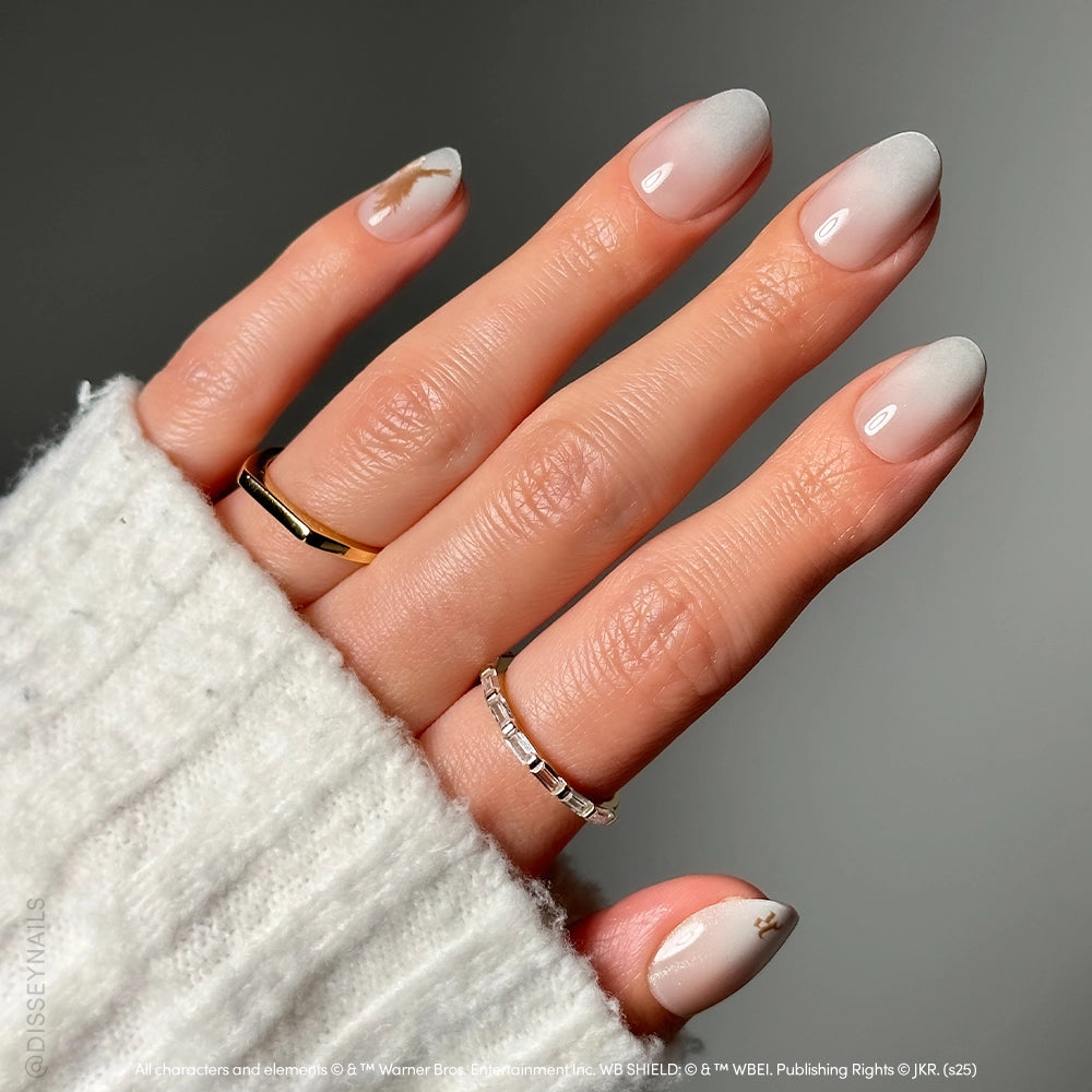 Wisdom never looked so striking. The Rowena Ravenclaw™ Nail Set pairs a nude-to-grey velvet fade with subtle house motifs, echoing the wit, elegance, and sharp intellect of its namesake founder. Finished in a velvet short oval shape, it’s clever, refined, and as timeless as Ravenclaw’s legacy.